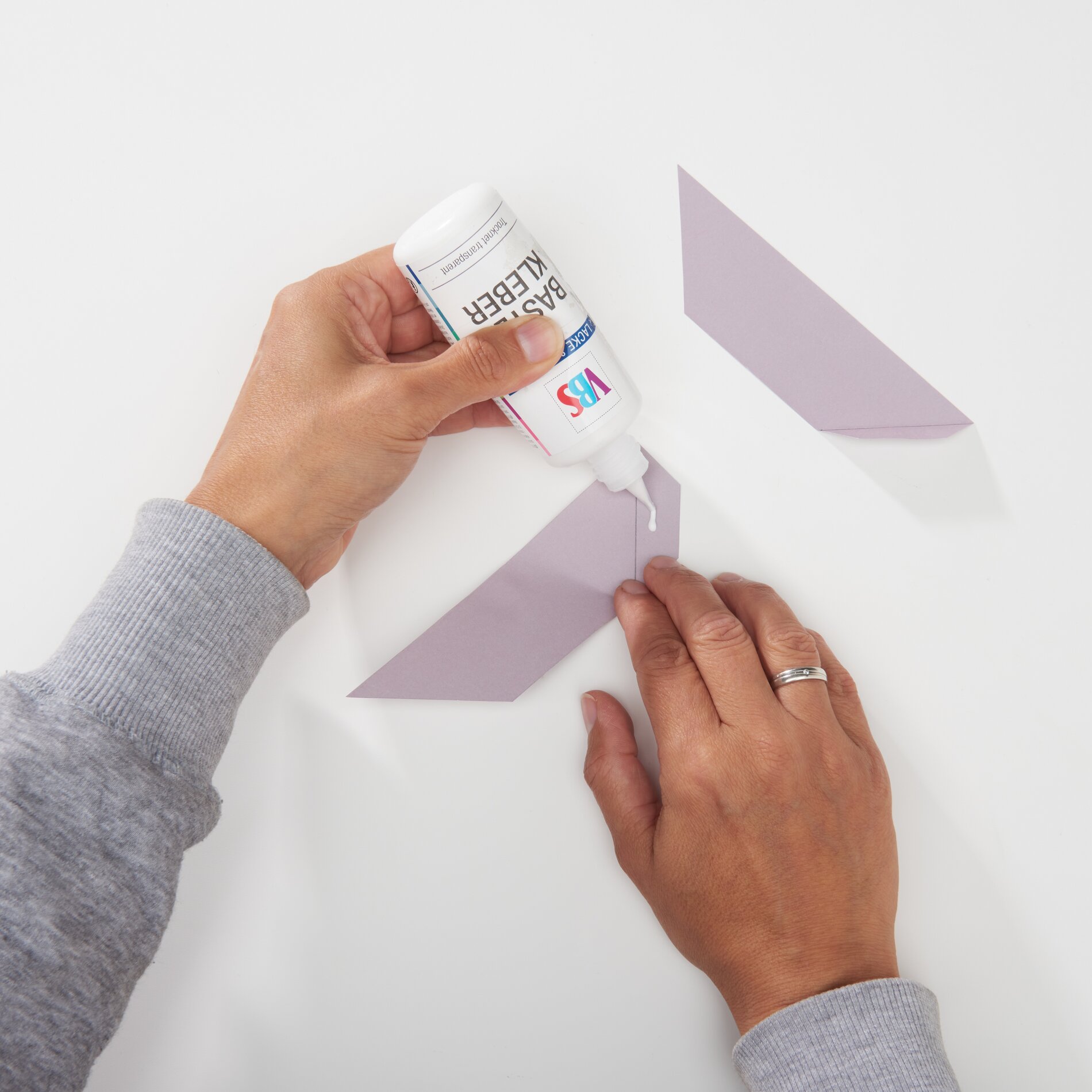 Fold the bottom long side of the strip to the top right to the adhesive edge and glue it down, either with handicraft glue or with double-sided adhesive tape. This creates a small "bag".