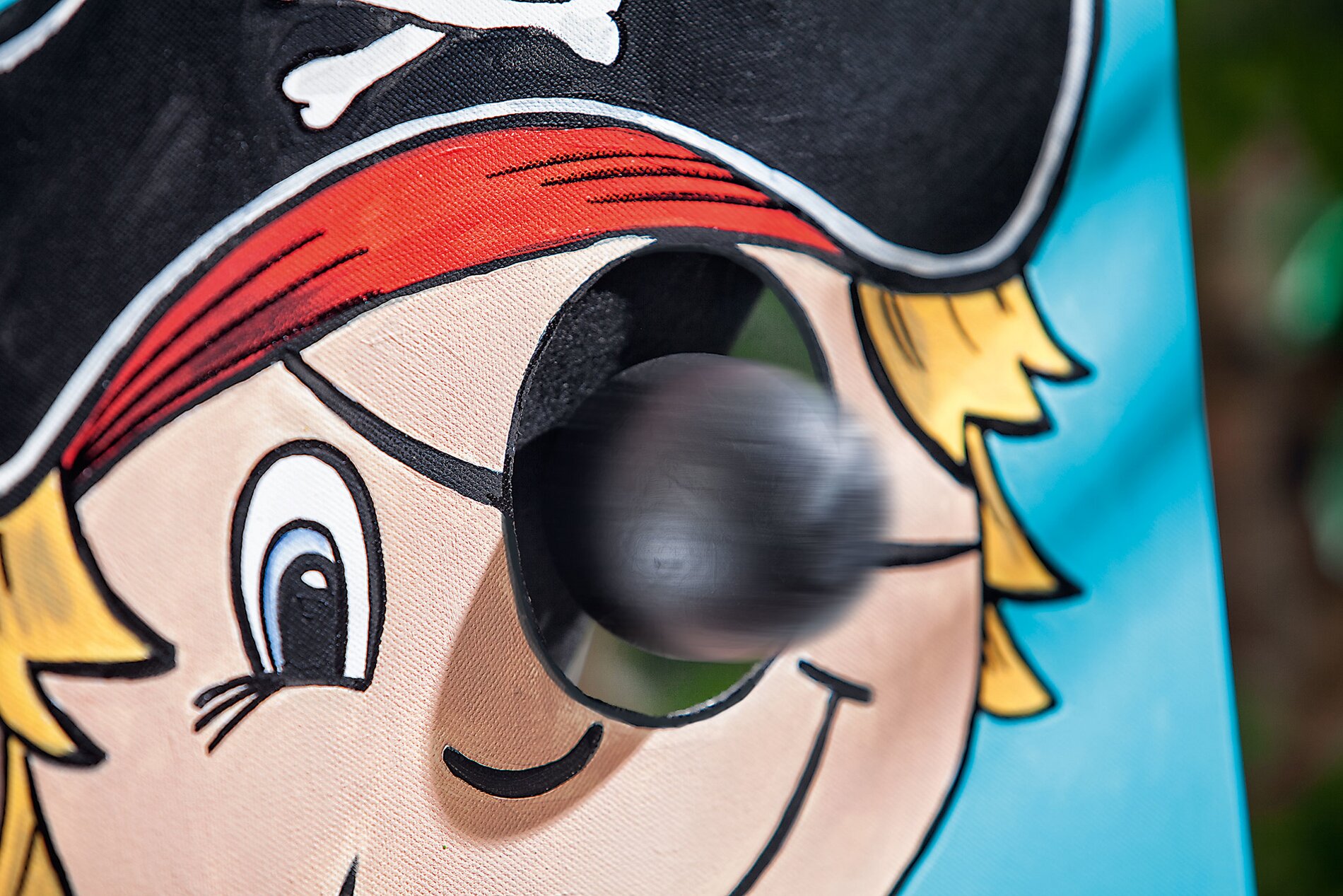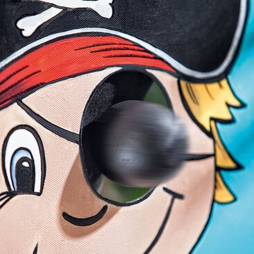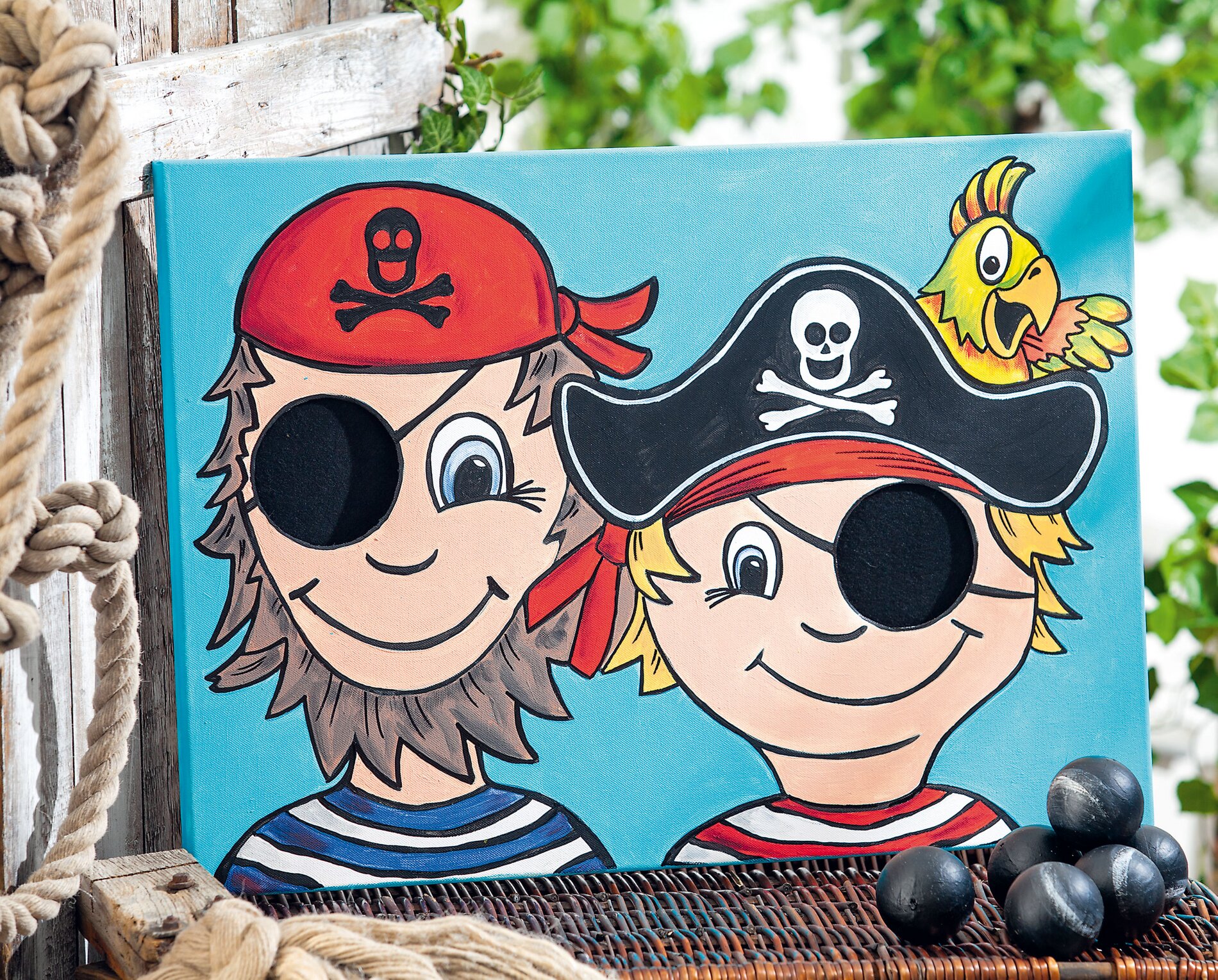Here's one for the eye. Behind the colorful Stretched Canvas hides a fun throwing game that is great fun for the big ones and the little ones. The pirates are painted with the help of a template and off you go.