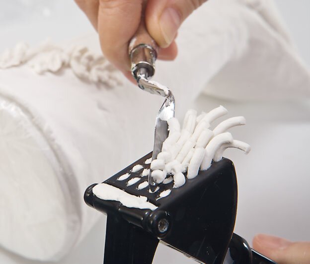 For the wool press Modelling clay through a garlic press, apply to the torso with a Spatula and spread.