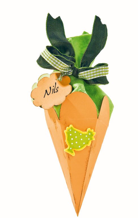 A funny idea for Easter or for school enrolment as a sibling bag: the gift carrot is made with the practical one. You cut the individual parts and close them with green and ribbons Felt .