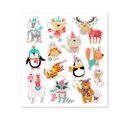 The Glitter sticker set "Christmas" is a real dream for all craft and DIY fans. It contains 4 sheets with different animals and Christmas motifs such as fir trees, houses, rainbows, snow globes, Santa Clauses, penguins, raccoons, birds, cats, bears, moose, llamas, mice, squirrels and many more.