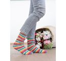 Each longitudinal ball of yarn has a harmonious colour gradient with stripes, which simply results from the ball of yarn. Go ahead and knit cuddly soft and warm socks for the whole family. Also suitable for sweaters and accessories like gloves and caps. For a pullover in size 38 you need about 500 g of the wool. For classic socks up to size 46 you need approx. 100 g