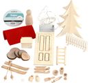 The Christmas handicraft set "Wichteltür" contains all materials for the creative design of a small elf home. From many wooden objects such as a Christmas tree, sledges and skis to the "Wichteltür" (Secret Santa) door, letterbox and even Secret Santa shoes, everything is included for an imaginative Christmas world. Especially children's eyes will shine and the waiting time during the Christmas season will be shortened. Let the helping gnome move into your home.