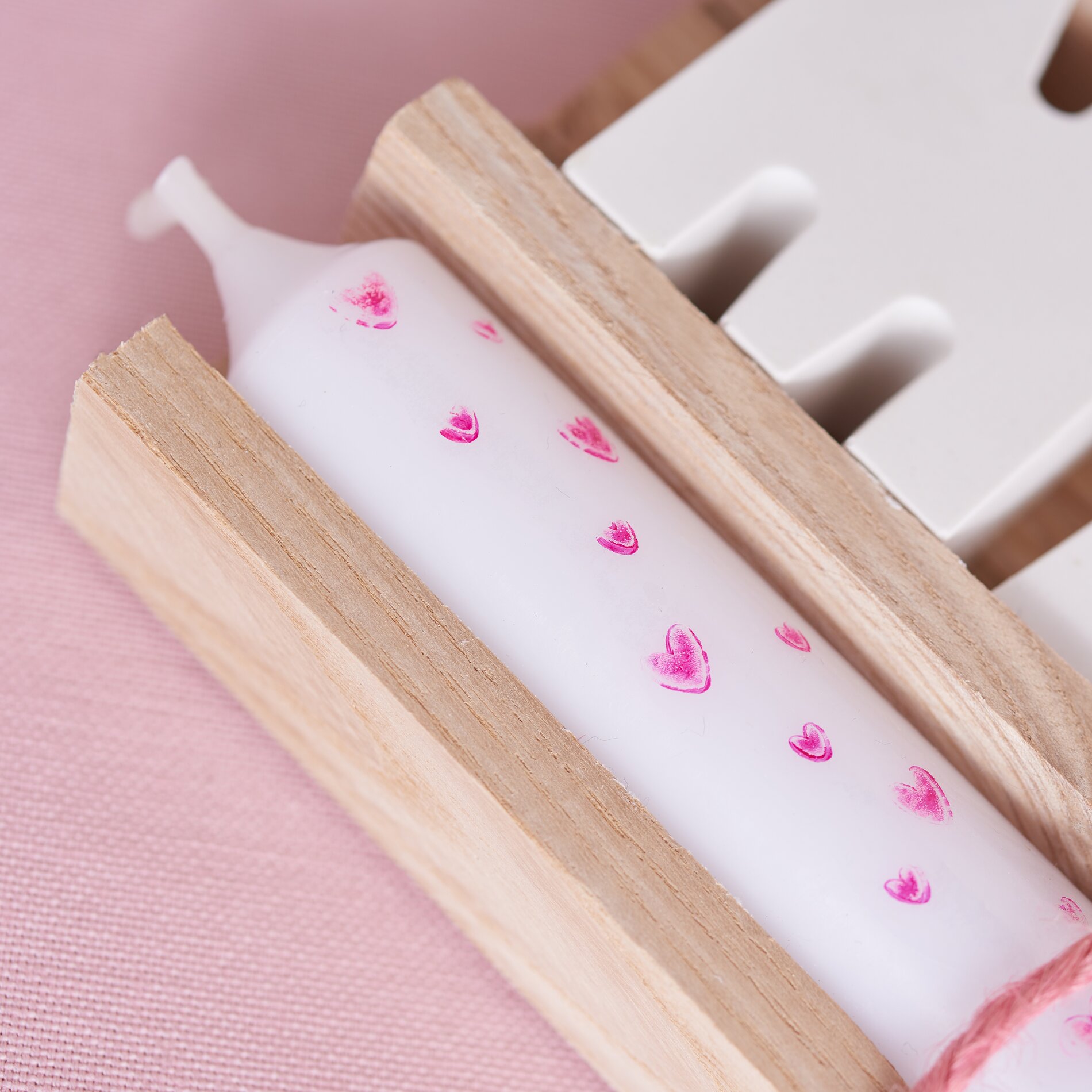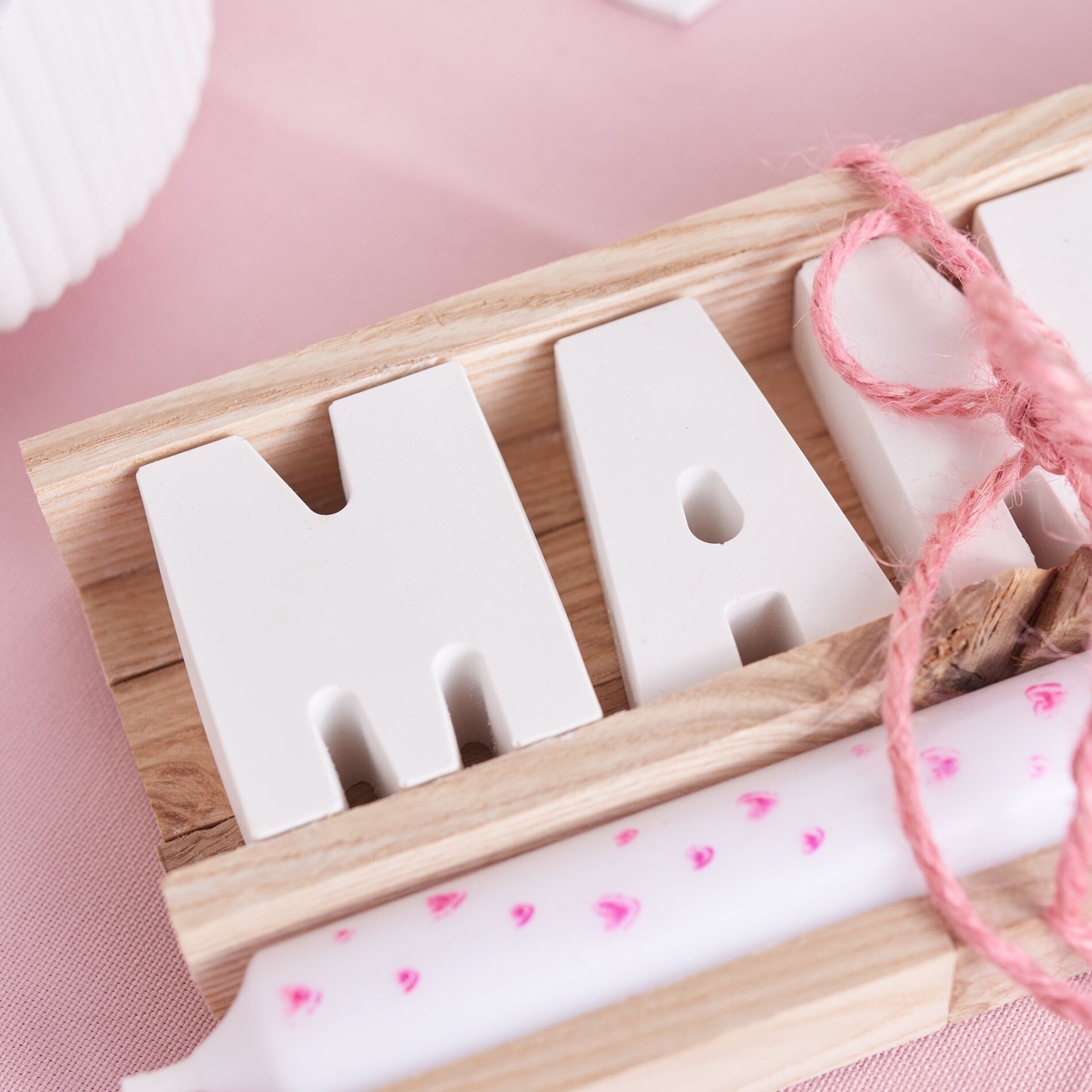 Glue another block upright under the letters as a support and place the candle underneath as a placeholder.