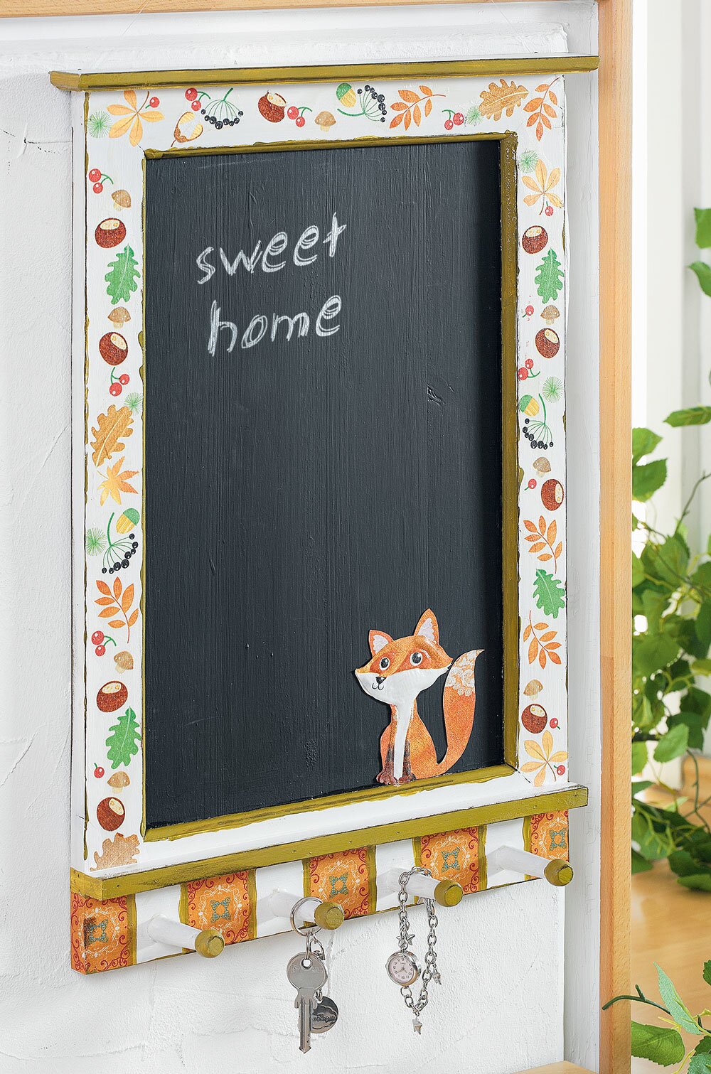 Napkin motifs and then stick them onto the board. Spray the fox motif from the back with masking glue beforehand because you stick it on the dark surface.