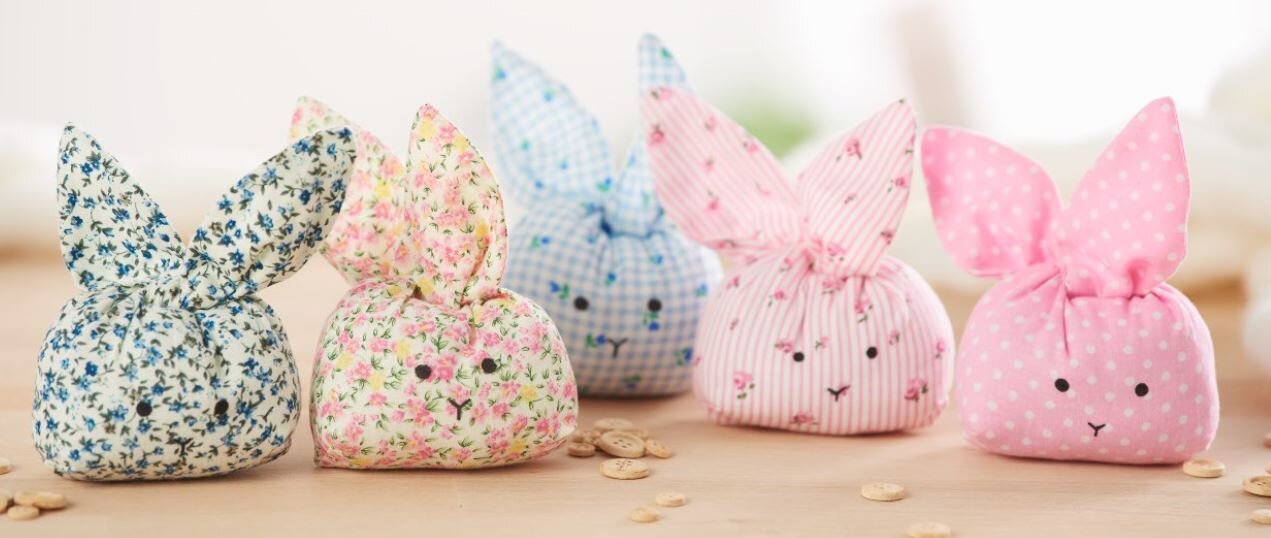 Now turn the bunny and fill it with cotton wool. Now you have to sew the open seam between the ears by hand e.g. with a ladder stitch. Now add a double knot over it, so that the ears also get their desired shape. Finally you can finish with a Fabric painting pen paint your eyes and nose on the fabric.