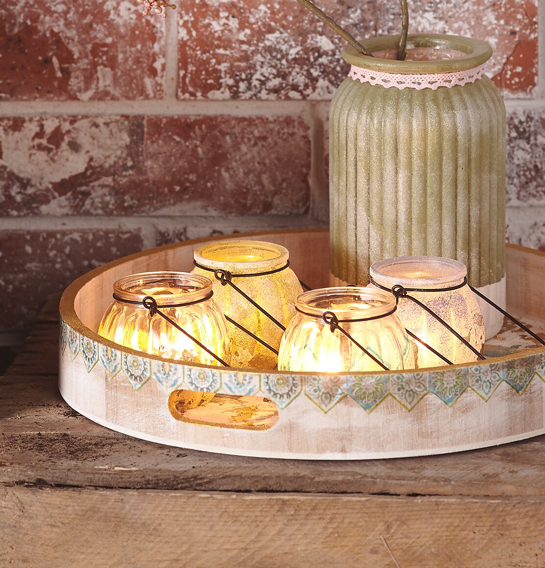 The wooden tray lovingly designed with motif straw silk, the lanterns and the beautiful flower vase are great creative ideas that can be made with a lot of fun