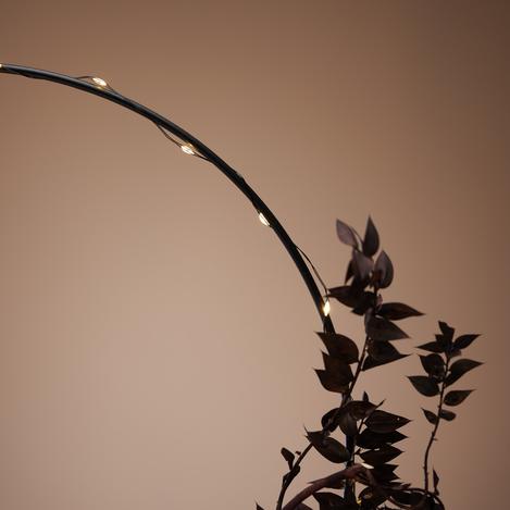 First tie the Micro LED chain of light around the metal ring. The battery compartment should be fixed with wire in a place that will later be covered with dried flowers.