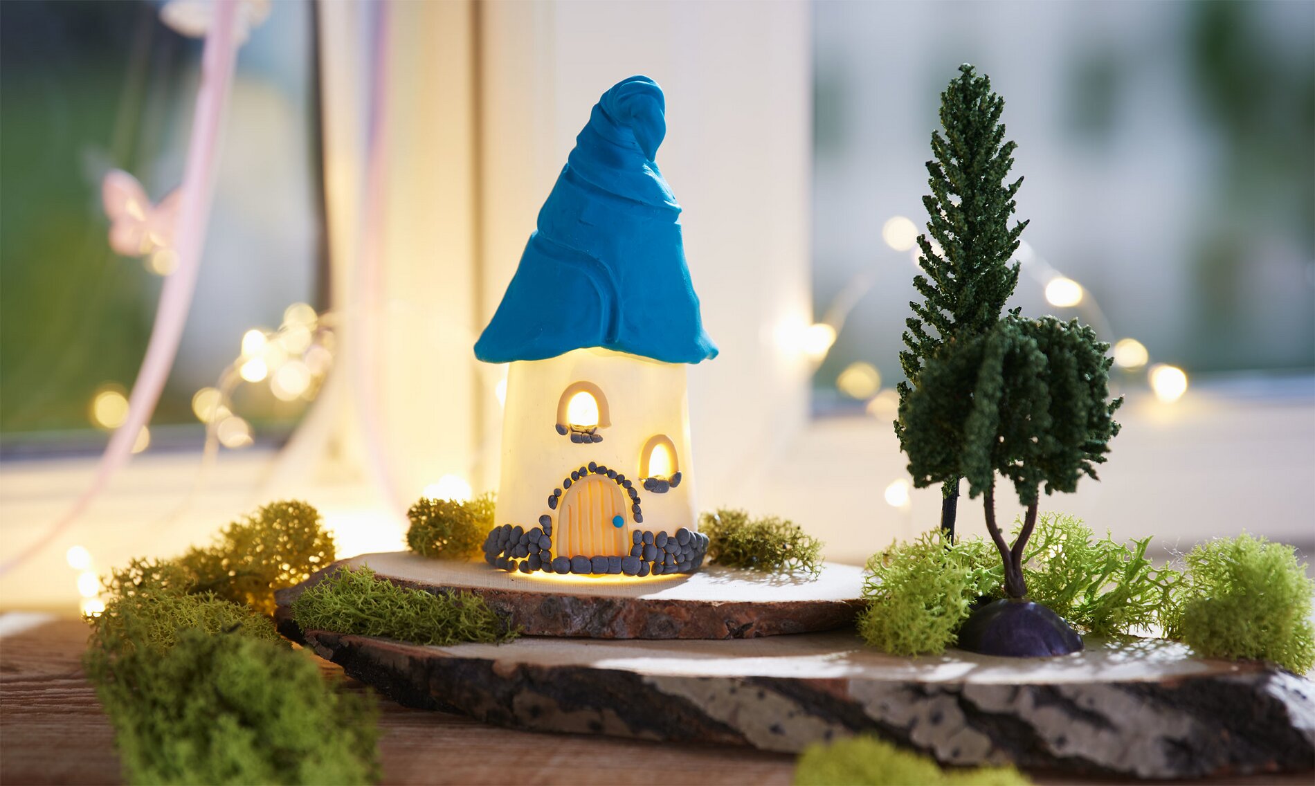 Small fairy houses are totally cute and decorative at the same time. They are easy Modelling material to knead and you can create many different ones at once. How about a fairy village? We show you how to install an internal lighting - the highlight!