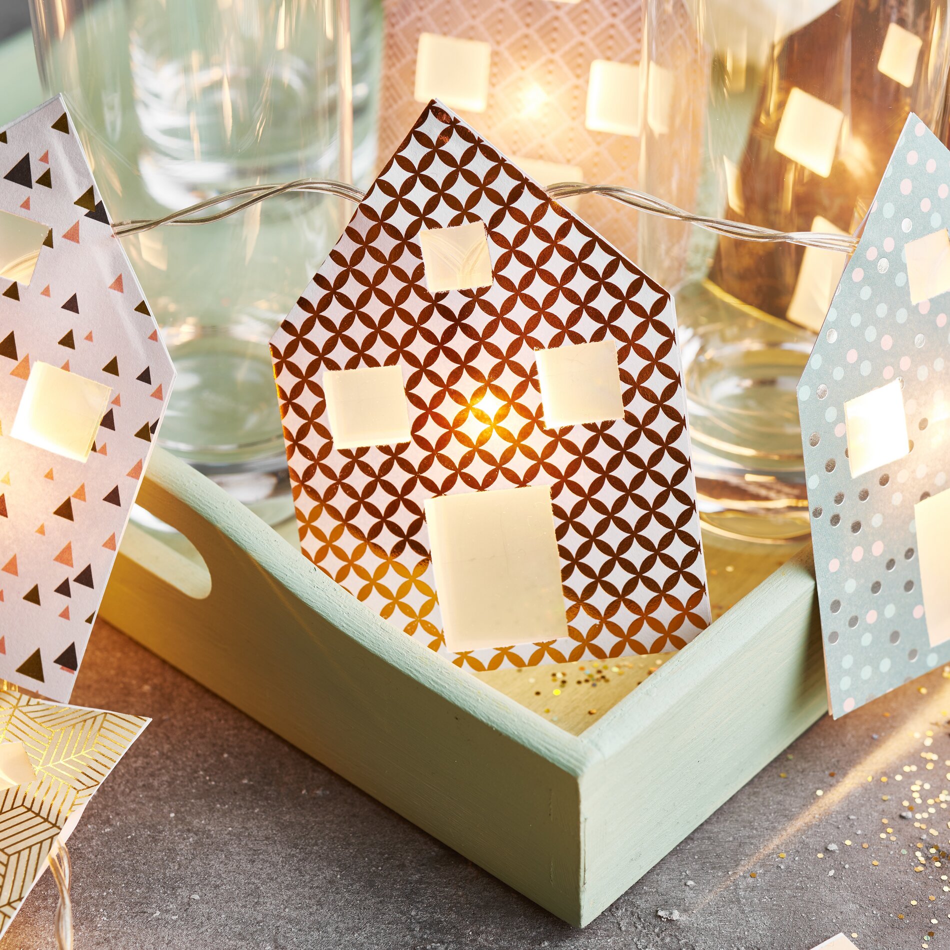 Are you looking for a sparkling and creative decoration idea for your home? Our DIY-Garland of illuminated houses is the perfect choice! With these instructions, you'll learn how to make a wonderful garland of illuminated houses that will bathe every corner of your home in a cozy light. Be inspired by these instructions and discover how easy it is to create something magical.