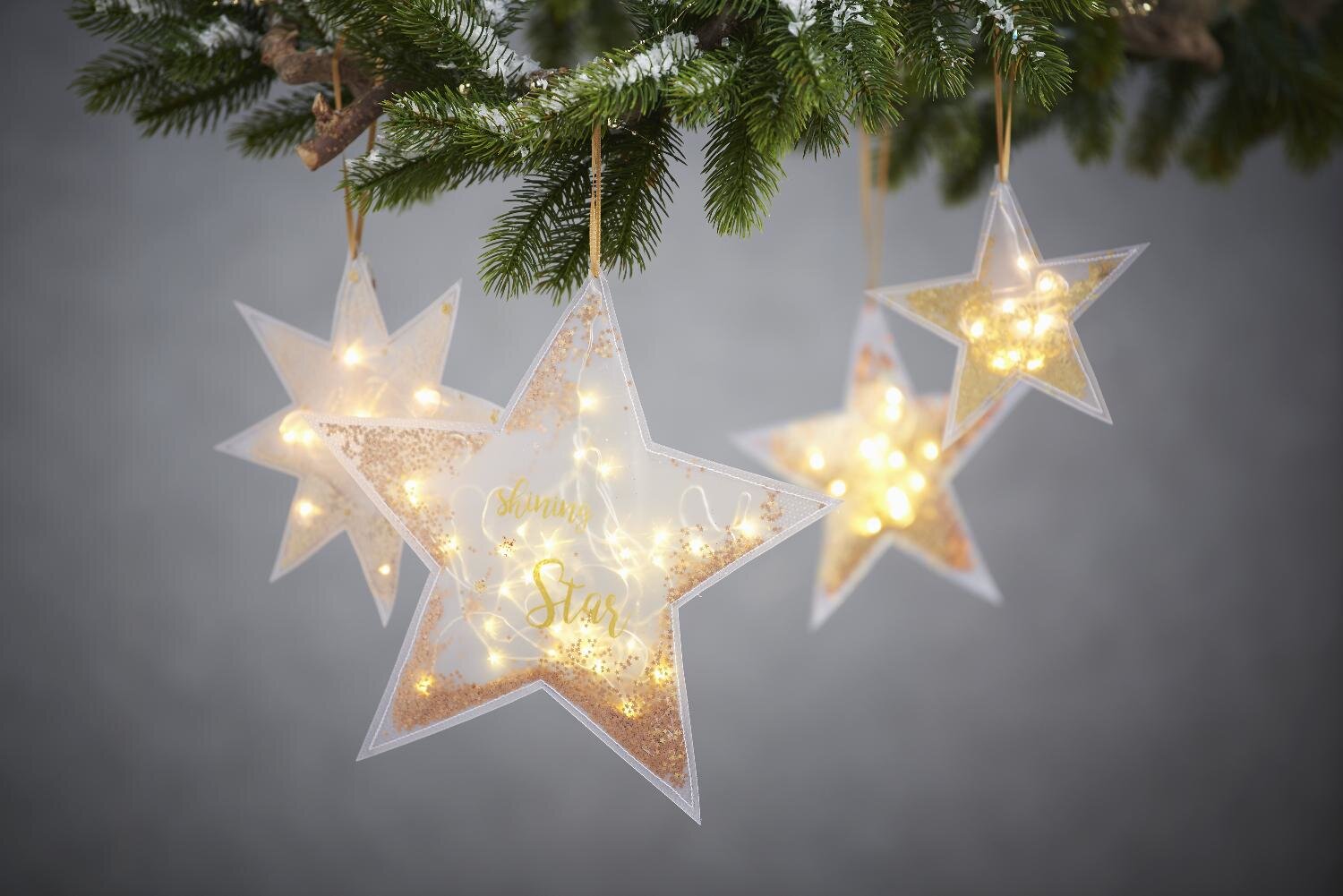 The stars are filled with glitter through the opening at the tips of the stars and the fairy lights are placed. Of course you can also fill the stars with other scattering parts. There are no limits to your creativity