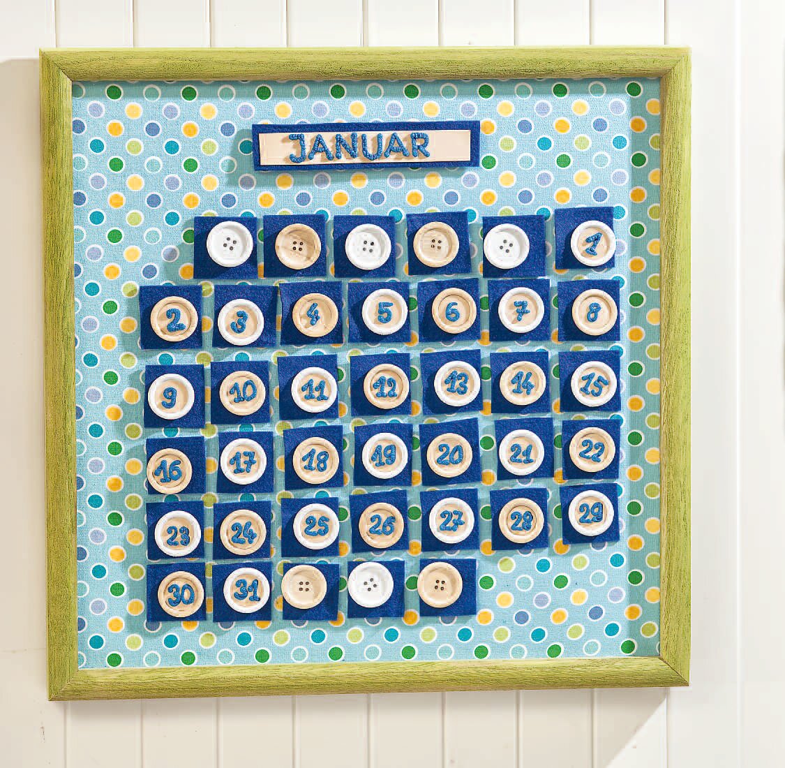 From New Year to New Year's Eve - with this calendar you are always up to date. The numbers are arranged with magnets in columns according to the days of the week, the name of the month is also Velcro strap fixed.