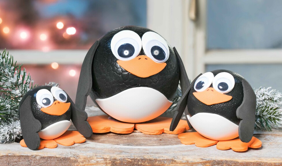 2. Transfer the templates to the Foam sheets and cut them out with scissors. Note the different colours for the penguin's eyes, pupils, beak and feet.