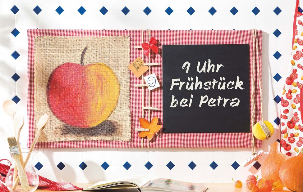 Two more jute cords on the edge of the stretcher, which have a Paint sponge and holding a blackboard chalk , give the wallboard that special something.