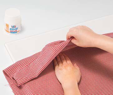 For the note holder from Jute yarn two threads of approx. 50 cm length are cut off. Simply fix them on the back of the stretcher frame with hot glue, finally only still fix the wooden clamps.
