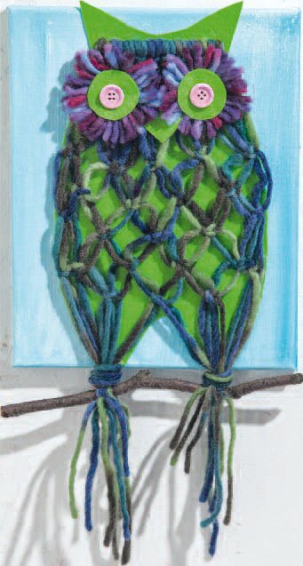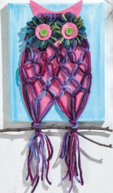 With only little effort and a few macramé knots, something and Knit felting wool a branch these great owls are made - just stick Stretched Canvas them on a painted one and decorate in the children's room!