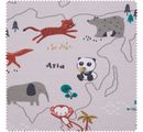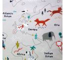 This Jersey fabric "World tour" has a width of approx. 150 cm with a fabric weight of approx. 190 g/m². The material consists of 96 % cotton and 4 % elastane. The motif size is approx. 1.0 - 24.5 cm. Due to the high proportion of cotton, the fabric is pleasant on the skin and has a smooth feel. A comfortable companion for all days.