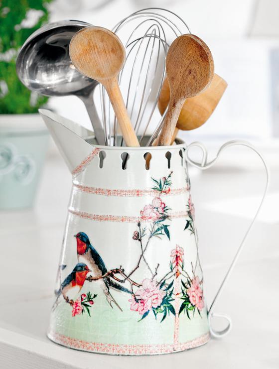 Milk churns are a popular accessory in the country house decoration. You can use them wonderfully as a vase with fresh flowers from your garden or as a decorative holder for your kitchen utensils in your kitchen. Decorated with this fresh natural motif, this jug will soon become indispensable in your country house kitchen.