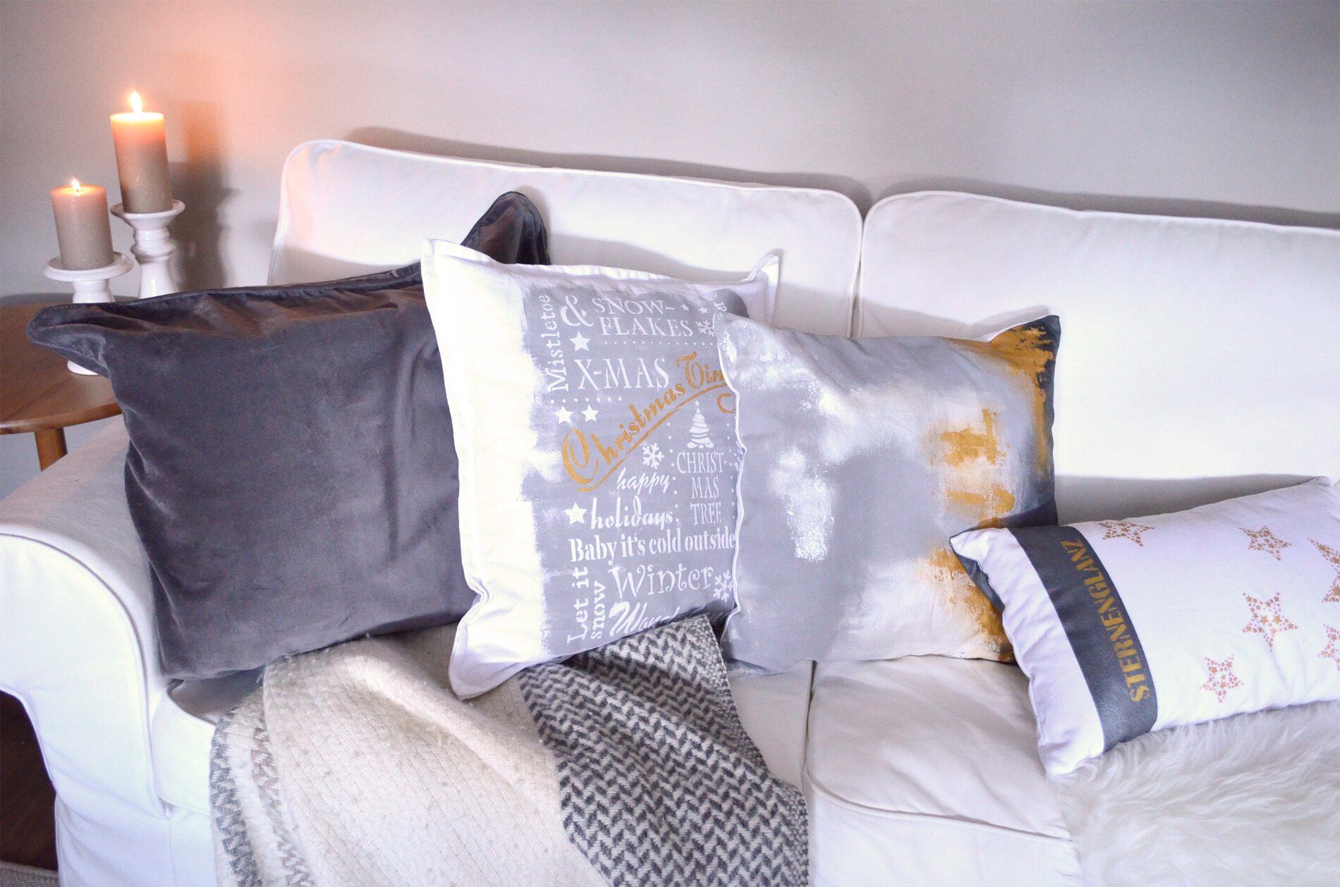 Don't these Christmassy cushion covers look beautiful? In our handicraft instructions we show you how to make them with a little Fabric paint,a Stencil and some tools you can design pillowcases yourself, which will conjure up a Christmassy and cosy atmosphere in your own four walls in no time at all.