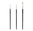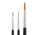 3 superfine Kolinex synthetic brushes in a set of 3 in sizes 000, 0 and 4, superfine and high quality in a seamless Clamp made of brass, nickel plated.