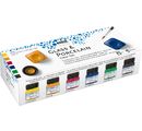 The KREUL Glass & Porcelain "Clear-Set" contains perfectly matched colours for your glass and porcelain painting. The clear effect captivates by an appearance like coloured glass.