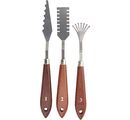 A KREUL "Painting Knife Set of 3" with metal blades and wooden handles. A high-quality set for pasty work. Due to the wooden handles the painting knives fit well in the hand