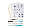 With this set, you can create loving greetings and wishes, dedications and warm words to Paper. carry your lovingly designed messages out into the world. With the Paper Love set, the design of cards and other Paper easier than ever. Transfer the motifs from the enclosed motif sheet with the transfer Marker, or use the masking Markerlike a peelable scratch-off crepe in marker form. Then use the included markers and the water tank brush to personalize your design and add great handlettering elements or water coloring