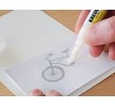 The KREUL "Transfer Marker" can be used on Terracotta, Paper, wood, ceramics, Stone, fabrics made of natural fibres and Foam sheets . The liquid contained in the pen is clear and transparent.
