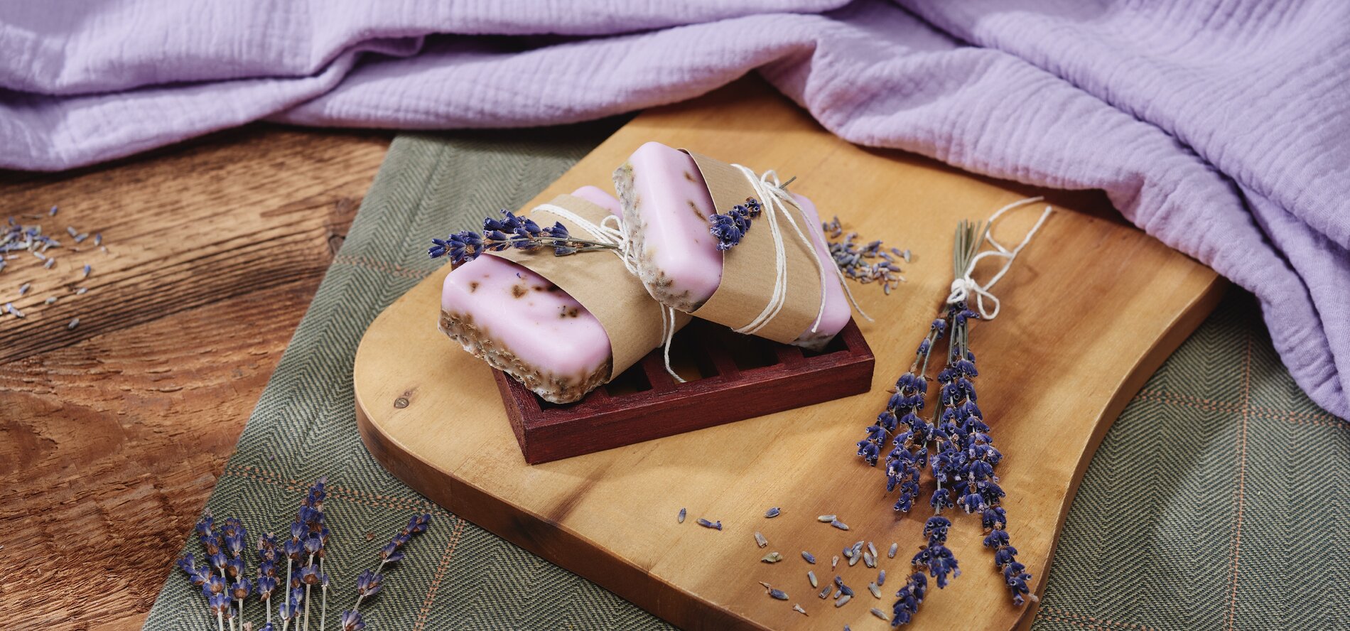 Pour gorgeous smelling lavender soaps. These look beautiful and also give off the pleasant lavender scent. Beautifully packaged, the soaps are also a great gift idea.