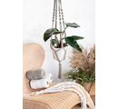 The Macramé-Cord is available in different colors. The macramé yarn has a length of approx. 198 m, as well as a thickness of approx. 2 mm. The Macramé-Cord has a single ply macramé yarn and consists of 80 % recycled cotton, and 20 % polyester.