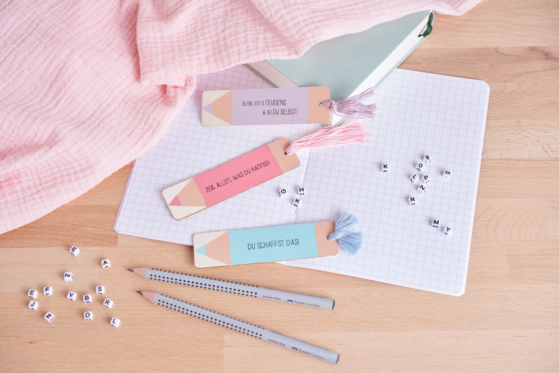 The bookmarks are a unique DIY-gift idea go to start of school. Order the necessary materials now and make more bookmarks for other students and bookworms, for family and friends.