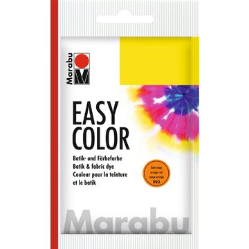 Marabu EasyColor is an easy-to-use batik paint that produces intensely bright colors on finish-free textiles made of cotton, linen, silk, viscose and mixed fabrics with up to 20% synthetic fiber content. It is also suitable for children and hand washable up to 30 °C. Thus ideal for projects in school and leisure. With Marabu EasyColor you can perform all hand dyeing and reserve techniques such as wax batik, setting and folding technique (Plangi), sewing technique (Tritik) as well as Dévoré dyeing (so-called "two-dye technique"). The content of a 25 g package is sufficient for intensive dyeing of 150 g fabric. For fabric quantities up to 300 g, medium to delicate d yeings are achieved. The dyed textiles should be washed separately with color-preserving mild detergent at max. 30° C or ideally by hand. A color fixer improves the washability, but does not guarantee absolute wash fastness. The original color shades are only achieved on white textiles. On colored textiles, the result is a mixture with the base color.
