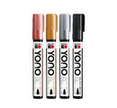 ... and the name says it all, because it is the only one you need to paint, write and design on almost any surface. The YONO has a high-quality Japanese bullet tip with a line width of 1.5- 3 mm. The colours are lightfast, brilliant and water-based. They dry matt and opaque. The Marabu YONO marker-Set "METALLIC" contains four marker in the following colours: Rosé-gold, gold, silver and black.