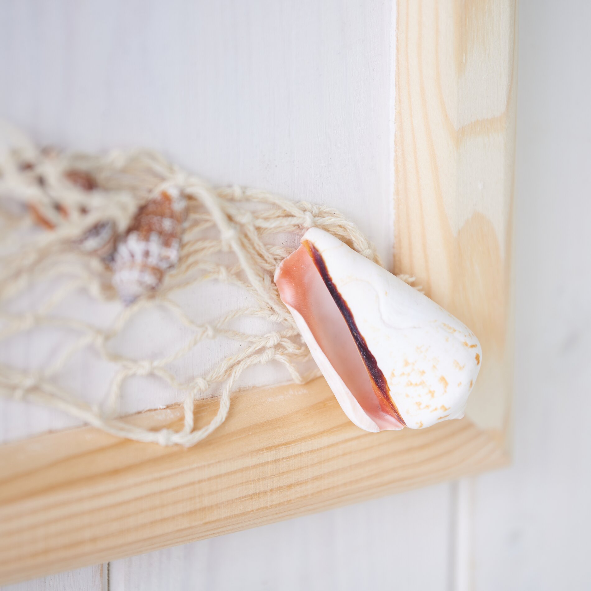Now the accents come into play: you can use hand lettering to write inspiring maritime sayings directly onto the frames. Then add scatter decoration, a fishing net and shells to give the frames depth and character. Make sure to place the decorations in a harmonious ratio on the frame.