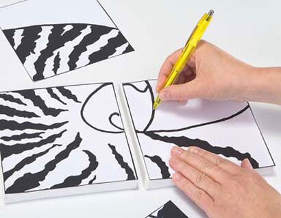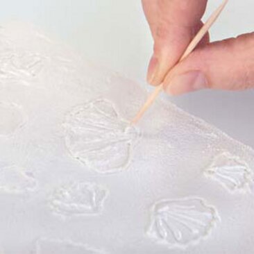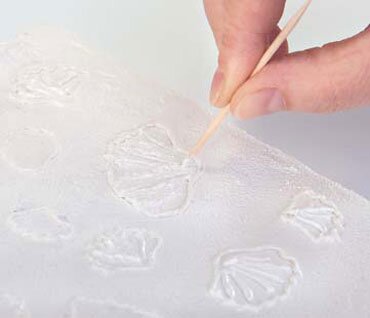 Delete Structure Paste on eight of Stretched Canvas . After drying, transfer the motifs from template sheet and trace the contours with Structure Paste (see right). Allow the contours to dry thoroughly and then work out the details. You will succeed best if you put a little Structure Paste in the gaps and work in fine grooves with a shashlik skewer.
