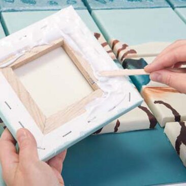 After drying, place the Stretched Canvas at regular intervals on the Painting board and glue it on with Effekt-Glue. This glue fixes the Stretched Canvas particularly firmly. In the liquid condition the individual Stretched Canvas can be however still very comfortably repositioned.