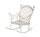 Decorative rocking chair made of metal in miniature format. The chair is approx. 5.3 cm wide, approx. 8 cm high and approx. 7.5 cm deep.