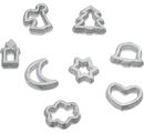 With this Miniature cookie cutter set you can let your creativity run wild. The set consists of 8 parts, including moon, heart, star, Christmas tree, bells and candles. Each cookie cutter is 0.5 cm in size and made of metal.