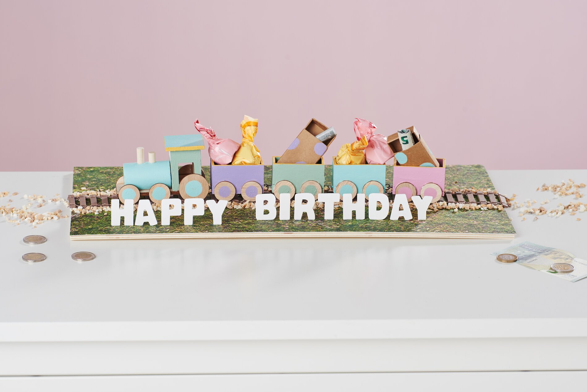 Are you still looking for a colourful money gift for a child's birthday? Then we have just the thing for you! Not only is it incredibly fun to make this colourful train, but the birthday child will also be very happy about it. The perfect gift!