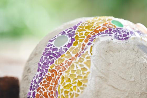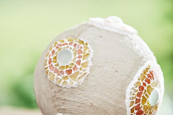 Garden balls made from plasticine and mosaic