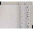 Motif block "Gray Card Hot Foil" 20 sheets with a paper weight of 250\ g/m² and a format of DIN A4. You receive 5 sheets per design. This Paper is equipped with a high-quality Hot foil print. The motives are small to large dots and stars. This Paper is printed on one side