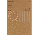 Beautiful and versatile Kraft paper-block. The fine motifs like circles, stars and dots are printed in 5 different shimmering accents. Hologram, Silver, Yellow gold, Whitegold and Bronze give the creative projects a noble flair.