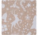 The wonderful Motif fabric linen look "Xmas all over" with a width of approx 140 cm is versatile. The fabrics by the meter are made of 55 % cotton and 45 % polyester with a fabric weight of approx. 170 g/m². On beige background is a white print with gifts, fir trees, gingerbread men, candy canes, deer, twigs and more.