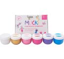 This set MUCKI Finger paint "King children" is especially designed for children from 2 years of age. The 6 small paint pots have a filling capacity of approx. 50 ml and can be easily closed again thanks to the screw cap.