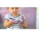 MUCKI Gleaming finger paint is suitable for children aged 2 and up and is easily applied with hands or fingers. The set with the colors fairy dust pink, magic purple, diamond blue, emerald green, gold treasure and dragon silver inspires the little artists:inside to fabulous works of art on paper, cardboard, wood and many other materials.