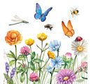 Spring napkin "Colorful flower meadow" is printed with colorful flowers, butterflies, bees, ladybugs and dragonflies. It is a half motif, which is super suitable for the design with the napkin technique. So trays, stretcher frames, signs and also candles can be decorated class.