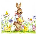 Easter bunny Max and his cheerful chickens will accompany you on your creative journey through Easter. With the Napkin "Easter bunny Max", you can design various DIY projects and bring your own Easter bunny to life in crafting fever. The napkin is printed on one side and features the enchanting motif of Max and three chickens, surrounded by colorful Easter eggs and spring flowers. The reverse side is white and therefore offers plenty of scope for your design ideas.