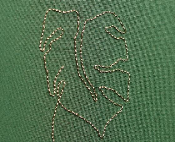 You now embroider with a back stitch. This involves using the embroidery needle to "trace" the outline of the embroidery design with needle and thread: