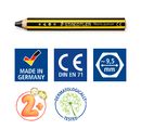 But it's not just the look and handling that are impressive, the Noris junior also scores highly in terms of robustness and environmental awareness. The particularly thick lead makes it especially break-proof and therefore ideal for use in children's art rooms. The pencil has also been dermatologically tested and the wood comes from sustainably managed forests that have been awarded the PEFC certificate.