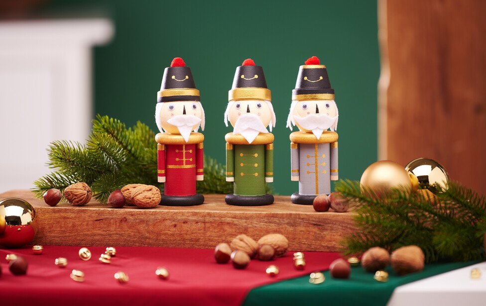 First saw one round stick per arm to 4.5 cm for the arms. Paint them with the craft paints chimney red, moss green or gray. Leave the paint to dry.